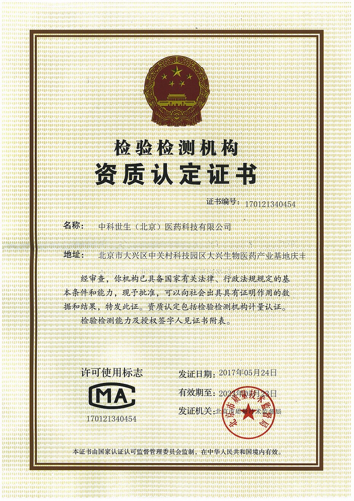 中科(kē)世生(shēng)秉承“隻做(zuò)專業(yè),專注做(zuò)好(hǎo)”的(de)發展理(lǐ)念, 早在2017年(nián)就(jiù)先後通(tōng)過中國(guó)計(jì)量認證(CMA)和(hé)中國(guó)合格©評定國(guó)家(jiā)認可(kě)(CNAS)資質認證認可(kě),成為(wèi)國(guó)內(nèi)唯一(yī)獲狂犬病中和(hé)抗體(tǐ)✔“雙資質”認證的(de)單位,且該資質也(yě)被國(guó)際實驗室認可(kě)合作(zuò)組織(ILAC)所認可(kě)。