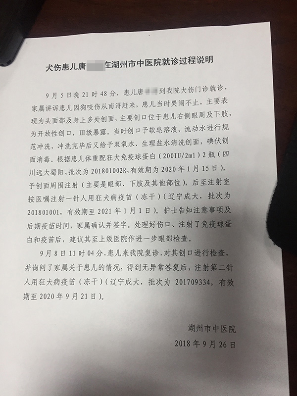 浙江省湖(hú)州市(shì)南(nán)浔區(qū)6周歲男(nán)童唐某某被狗咬傷後雖然及時(shí)就(jiù)醫(yī),注射了(le)疫苗,14天後仍狂犬病發作(zuò)死亡,事(shì)件(jiàn)引發公衆關注。